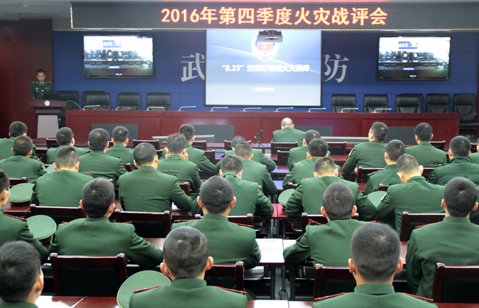 2月4日下午,武漢支隊召開典型火災戰評會。支隊副參謀長楊威、司令部相關科室和各中隊中隊長及供水班班長在主會場參會,中隊除勤務以外全體官兵在各單位分會場參會。