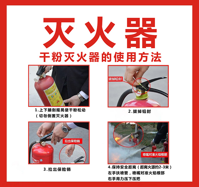 1.上下顛倒搖晃使干粉松動。(切勿倒置滅火器)